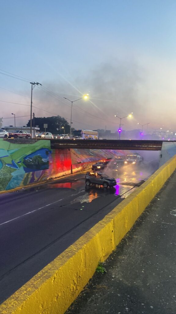 Mientras el automóvil color gris comenzaba a incendiarse bajo el puente, por fortuna el conductor logró salir a tiempo del automóvil resultando ileso.