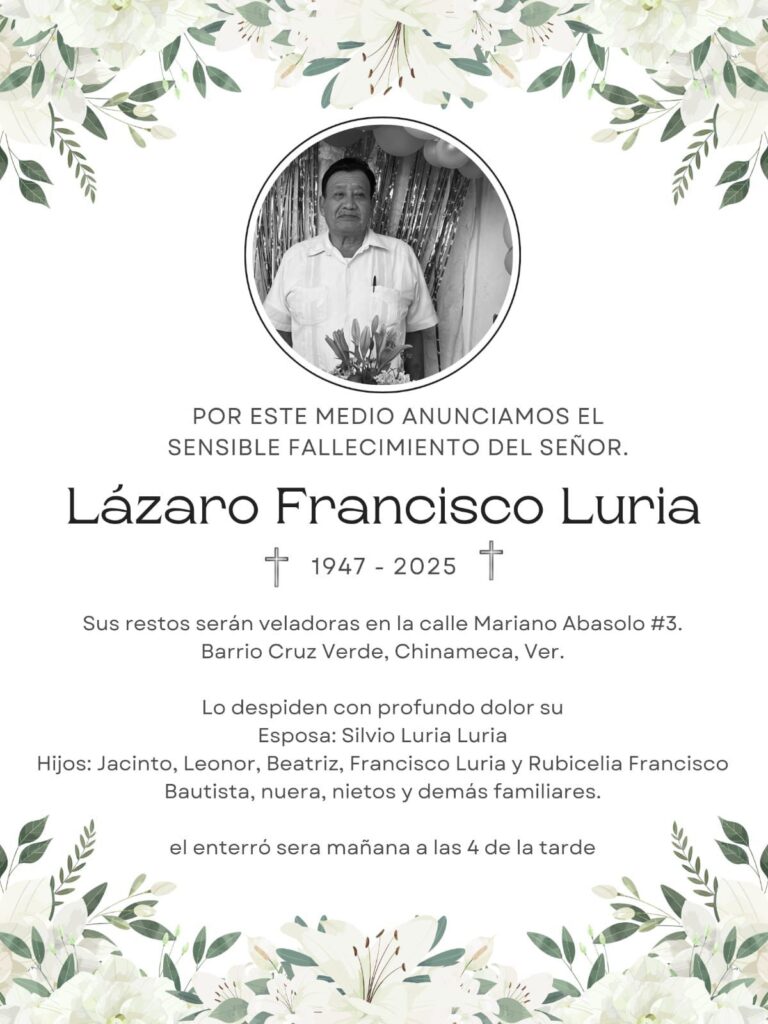 Chinameca, Ver. – Lázaro Francisco Luría, quien fuera alcalde del municipio de Chinameca, en 2012 y 2013, fue decapitado y su cuerpo abandonado entre sembradíos de maíz, después de tres días de ser secuestrado, al sur del estado de Veracruz. Autoridades investigan este crimen que enluta a la familia y pobladores de aquella localidad.