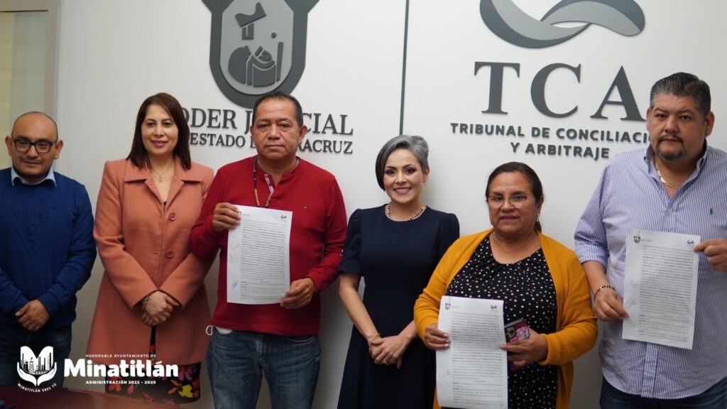 Minatitlán, Ver. – Tras sostener un diálogo donde prevaleció la cordialidad y respeto, y gracias a la buena disposición de la presidenta municipal de Minatitlán, doctora Carmen Medel Palma, con los representantes del Sindicato Único de Empleados Municipales (SUEM), se logró un acuerdo que pone fin a la huelga que mantenían desde hace varias semanas.
