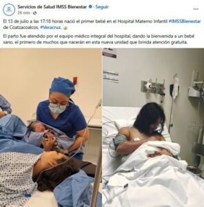 El nacimiento fue atendido por el equipo médico integral del hospital, marcando un momento significativo para esta nueva unidad de salud que forma parte del programa IMSS-Bienestar.