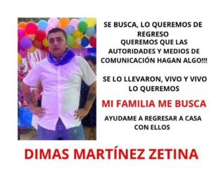 Se trata de Dimas Martínez Zetina, de oficio taxista, quien habría sido interceptado por sujetos armados cuando se encontraba en una colonia de este municipio. De acuerdo con familiares, el hombre fue llevado contra su voluntad, sin que hasta el momento se tenga información sobre su paradero.